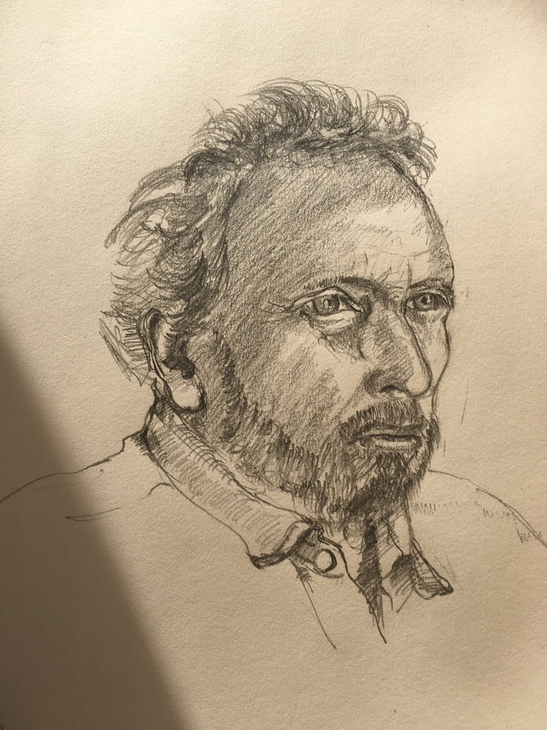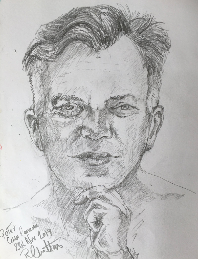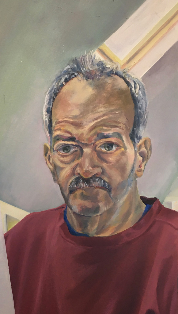 For this series of oil portraits, Bob has used a technique known as the ‘Zorn Palette’ after the Swedish Artist Anders Zorn, 1860-1920. Only the colours Vermillion, Yellow Ochre, Black and White are used.