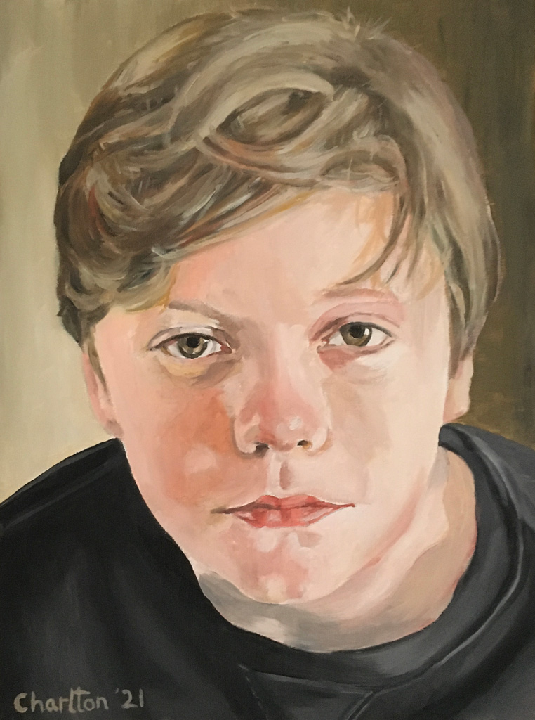 Pour cette série de portraits à l’huile, Bob a utilisé une technique connue sous le nom de « palette Zorn » d’après l’artiste suédois Anders Zorn, 1860-1920. Seules les couleurs Vermillon, Ocre jaune, Noir et Blanc sont utilisées.